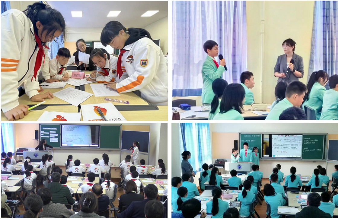 小学部戴丹丹老师《距离与绝对值》和中学部赵敏老师《再探“负负得正”》作为第二阶段的探究课进行展示。学生借助数轴,辨析位置和距离的区别,初步理解绝对值的概念,用渗透转化、数形结合等思想方法,培养概括思维能力。赵老师引导学生发散性思维,让他们从生活实例和数学思维模型中,证实了“负负得正”的合理性。