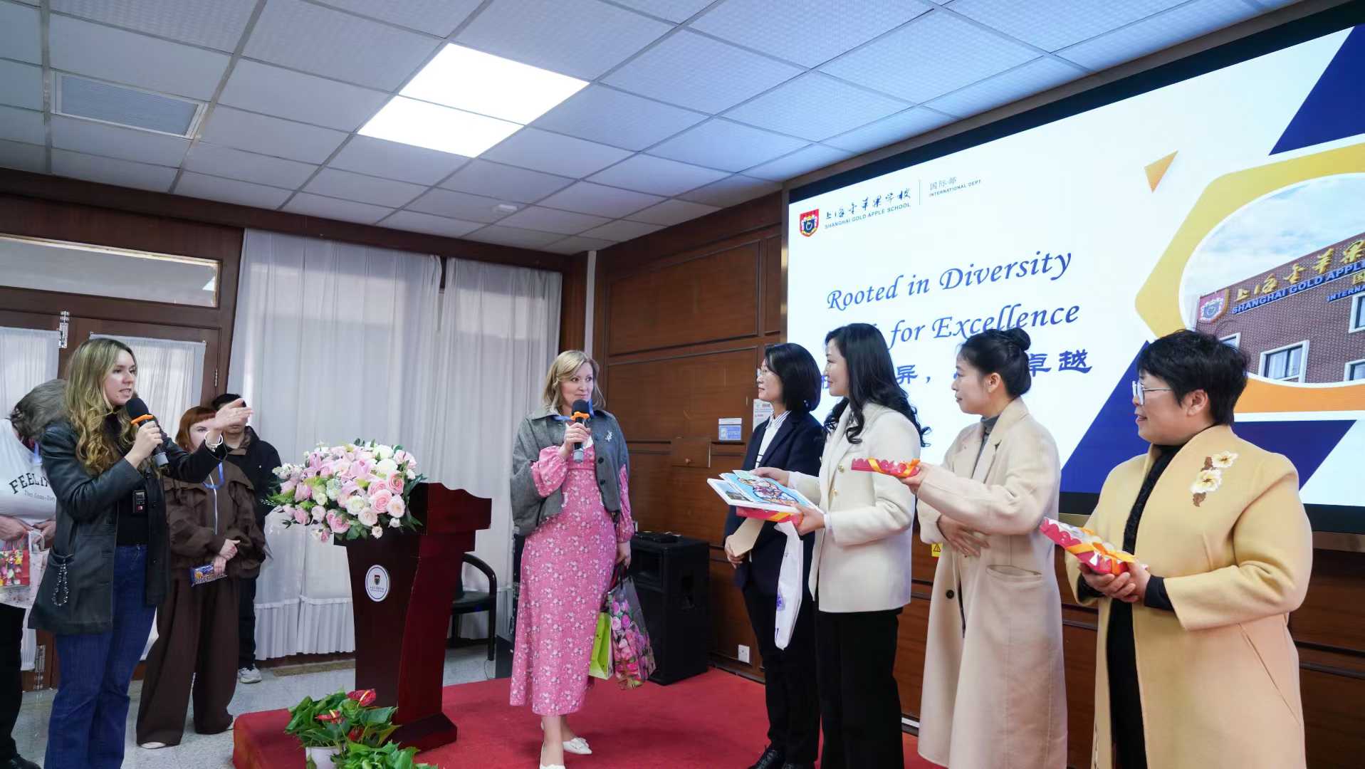 2026年3月13日周五上午,由俄罗斯幼儿园、小学、中学、大学校长组成的校长代表团一行莅临上海市民办金苹果学校,开展教育访问与交流活动。此次访问旨在增进双方了解,探索中俄基础教育领域的交流合作机会,推动师生互访、课程共建等项目的深入发展。