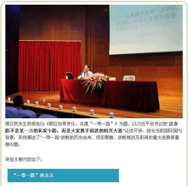 顺应世界变化 共建“一带一路”——全国政协常务委员、上海市政协副主席周汉民教授来我校作专题报告
