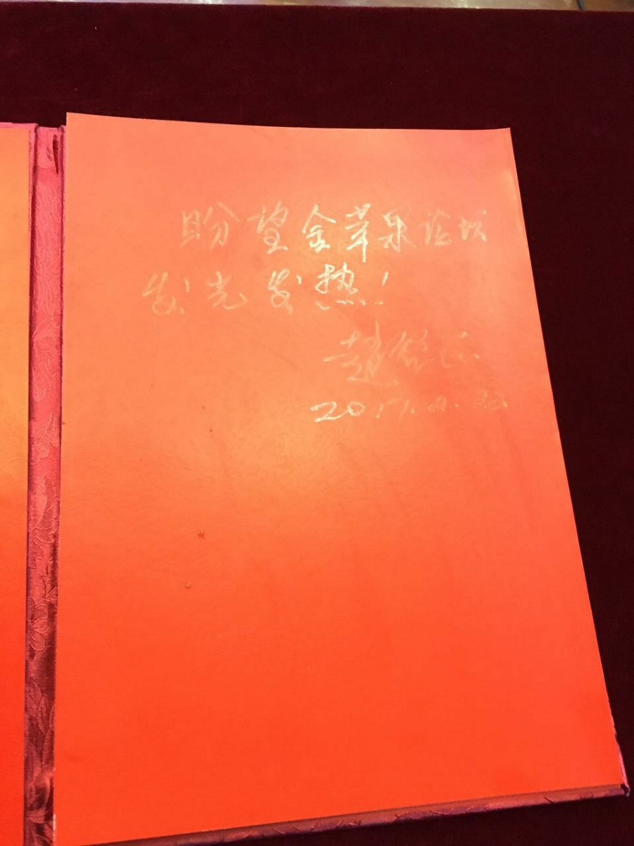 会后赵启正为首届金苹果论坛留下良好祝愿。