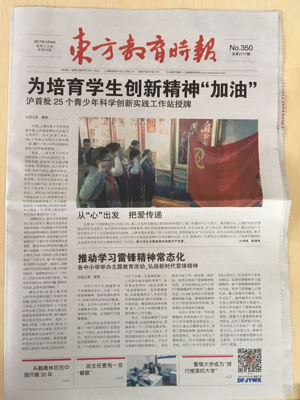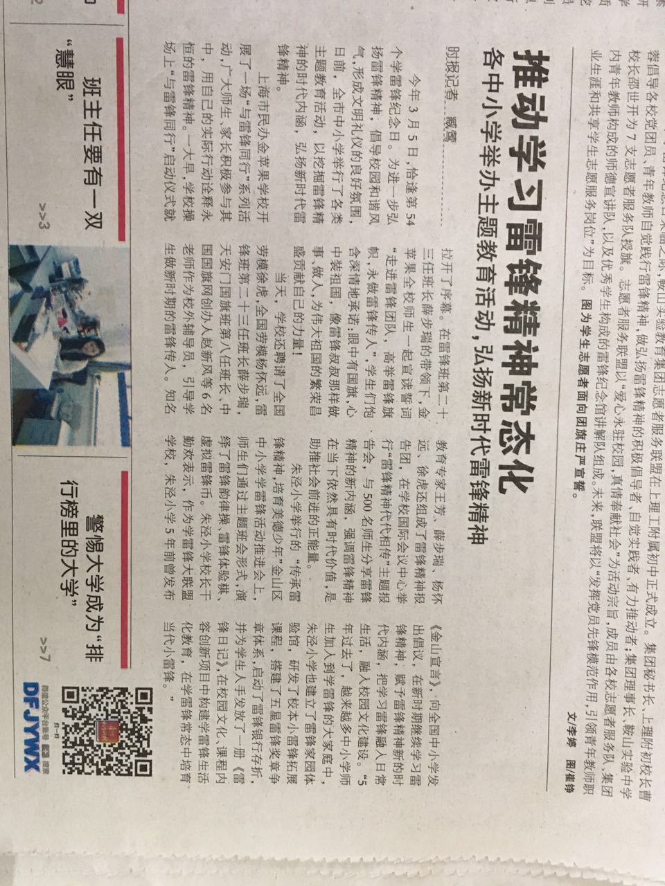 《东方教育时报》-头版头条报道学雷锋活动